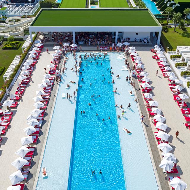 Bij het hotel zijn twee zwembaden te vinden waarvan één met de grootte van wel twee olympische baden. Ook is er een zwembad met vier glijbanen. De gehele dag door kun je meedoen aan (sportieve) activiteiten. Begin de dag bijvoorbeeld goed met een les pilates. Geen zin om actief bezig te zijn? ’s Middags kun je mee doen aan een backgammon tournooi, maar echt helemaal relaxen kan natuurlijk in het schitterende wellnesscenter.