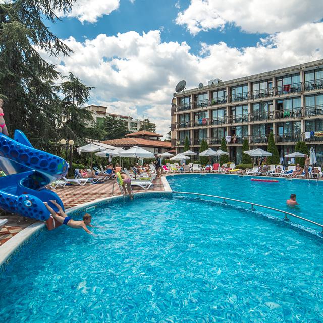 Hotel Baikal ligt op wandelafstand van het heerlijke goudgele strand en de blauwe zee. Het gezellige oude centrum is ook vlak bij en dat maakt het een ideale locatie, want alles is binnen handbereik. In het hotel is er voor iedereen wat te doen. Er is een zwembad met lekkere ligbedden en een apart kindergedeelte. Natuurlijk zorgt het glijbaantje voor uren waterpret. Ben je graag actief tijdens de vakantie? Er is een fitnessruimte en je kunt er tafeltennissen en minigolven.