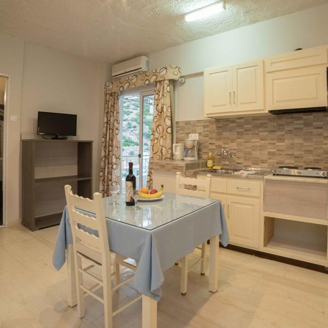 Het kleinschalige appartementencomplex Pallada & Athena ligt in het prachtige dorp Agia Galini, in het zuiden van Kreta. Door de ligging bovenaan de hoofdstraat heb je vanaf hier dan ook een prachtig uitzicht over de haven en de zee. Met het strand 250 meter verderop, duurt het ’s morgens niet lang voor je een duik kunt nemen in het heerlijke verkoelende water. De vriendelijke familie die het complex runt, zorgt voor een gemoedelijke sfeer. De kamers zijn goed verzorgd en je kunt hier heerlijk dineren bij één van de gezellige tavernes in de buurt. Je kunt er ook voor kiezen zelf een lekkere maaltijd te bereiden in je appartement, met verse ingrediënten uit de supermarkt in de buurt.