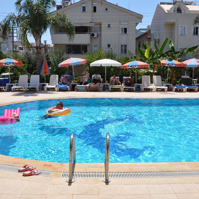 Vanaf de sfeervolle Appartementen Parkmar sta je binnen een mum van tijd met je voeten op het warme strand. Ook is het bruisende centrum van Marmaris al na een gezellige wandeling van zo’n 15 minuutjes te bereiken.