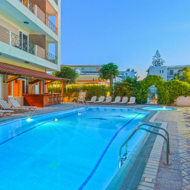 Appartementen Pavlos is zeer centraal, maar toch rustig gelegen. Met een paar minuutjes lopen sta je midden in het centrum van Kos-Stad en met de voetjes in het zand van het populaire Lambi-strand. De appartementen zijn lekker ruim en zeer goed onderhouden. In de tuin ligt een heerlijk zwembad met ligstoelen en parasols. Voor de kids is er een apart kinderbadje. Ook is er een leuke lounge met bar en bij het zwembad bevind zich een pool/snackbar. Wat wil je nog meer?