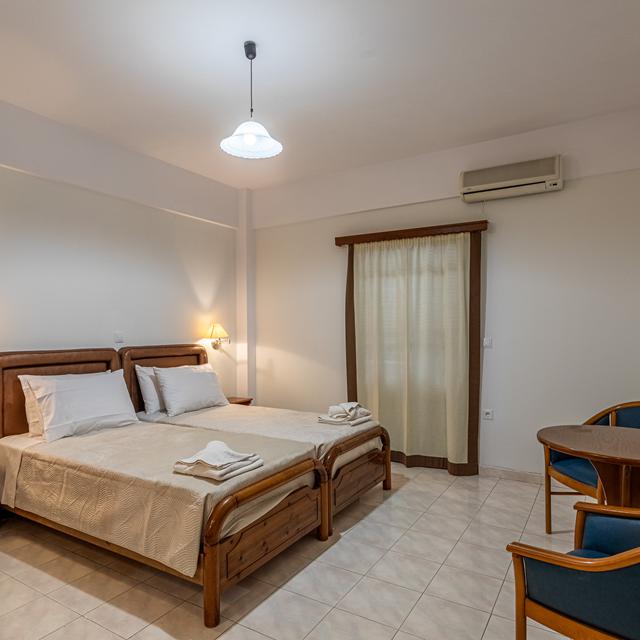 Zodra je voet zet in Theoxenia, een knus complex met een charmant terras, waan je jezelf in een oase van rust en comfort. Dit charmante verblijf, dat vlak bij de prachtige stranden van Stoupa en Kalogria ligt, biedt een ideale uitvalsbasis om de mooie omgeving te verkennen. De sfeer is ontspannen, terwijl je geniet van het adembenemende uitzicht op de turquoise zee vanaf je eigen balkon.