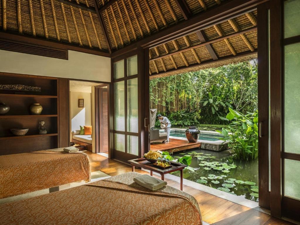 Verblijven in een aangename accommodatie in Ubud? Hotel Four Seasons Resort Bali at Sayan is een luxe 5-sterren hotel, perfect voor een fijne vakantie. Ruim 3841 reizigers beoordelen Hotel Four Seasons Resort Bali at Sayan gemiddeld met een 10. Meer weten? Bekijk dan nu de foto[APOSTROPHE]s en beoordelingen van Hotel Four Seasons Resort Bali at Sayan, voor meer informatie! Ben jij toe aan een heerlijke vakantie in Indonesie? Boek jouw vakantie naar Hotel Four Seasons Resort Bali at Sayan vandaag nog!