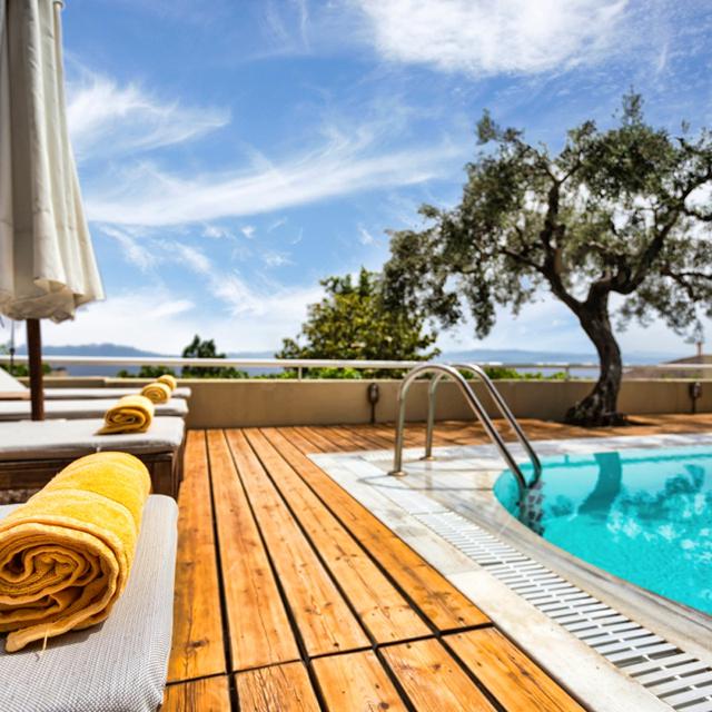 Bij het zwembad is het goed toeven op een ligbedje onder je parasol. Even lekker relaxen en genieten van de zon en de mooie omgeving. Voor de lekkere trek kun je terecht in de Taverne van het hotel of bij de poolbar. Bestel naast je snack een heerlijk drankje om af te koelen of een aperitief voordat je gaat dineren.