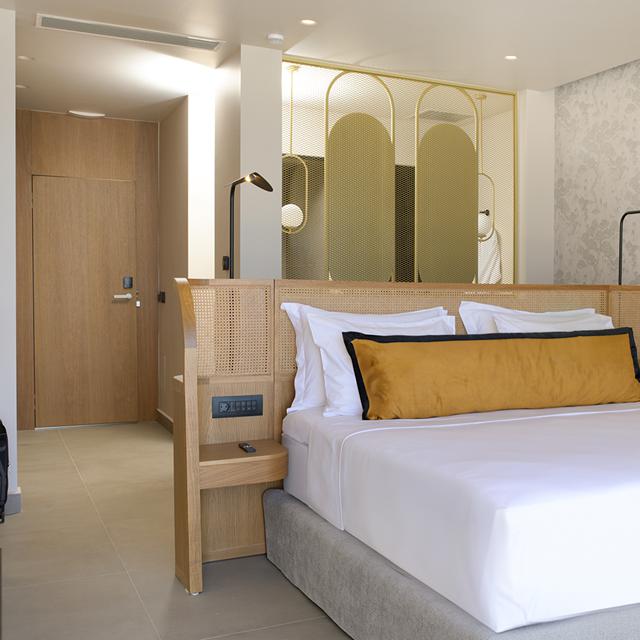 De kamers en suites zijn ruim en modern ingericht, met zachte aardetinten en luxe details. Sommige kamers beschikken zelfs over een eigen zwembad, wat zorgt voor extra privacy en comfort. Geniet van het zonnetje bij het zwembad met fijne ligbedden. De locatie in Sissi biedt een goede mix van rust en gezelligheid, met tavernes en cafés op loopafstand.