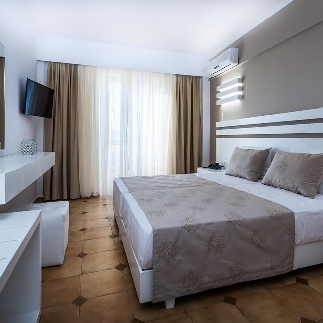 In je hotelkamer kom je lekker tot rust, niet alleen de bedden zijn fijn maar zeker ook de sfeervolle inrichting. Alle kamers hebben een balkon en reserveer je een kamer met zeezicht dan kijk je uit over de prachtige azuurblauwe zee. Je gaat in dit hotel een mooie tijd tegemoet!