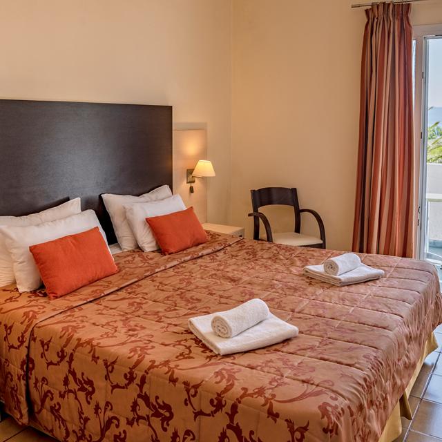 Midden in een groene omgeving en aan de voet van een berg, ligt het Hotel Matala Bay. Wat een goed begin van je vakantie! Het