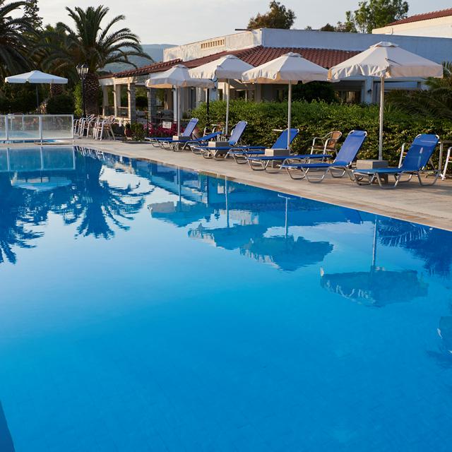 Het charmante Kalloni Bay Hotel ligt aan het privéstrand dat grenst aan de baai van Kalloni. Een perfecte locatie voor een heerlijke strandvakantie. Voor ontspanning en verfrissing heeft het hotel een groot zwembad met een apart kinderbad en zonneterras. Vanaf hier kun je genieten van een adembenemend uitzicht op de Egeïsche Zee. Overdag kun je koude drankjes bestellen bij de zwembadbar.