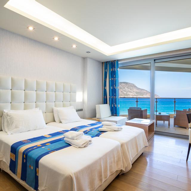 Direct aan de blauwe Egeïsche zee en het brede strand ligt Hotel Konstantinos Palace. Een mooi hotel met een moderne inrichting en prachtig uitzicht. De kamers zijn netjes ingericht en ideaal om uit te rusten en de batterij weer helemaal op te laden.
