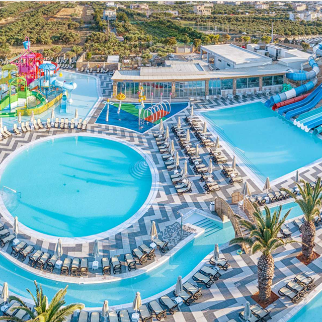 Door het uitdagende waterpark met wel 8 glijbanen, waterspeeltoestellen en een lazy river willen de kinderen nooit meer het water uit. Wat aan je conditie doen? In het zwembad met Olympische afmetingen kun je baantjes trekken en wedstrijdjes houden. Ook kun je een potje basketballen, fitnessen, of een balletje slaan op 1 van de 15 tennisbanen. Van al dat bewegen heb je vast trek en dorst gekregen. Een hapje en een drankje heb je zo gehaald bij onder andere het Fast Food restaurant. Je smaakpapillen worden sowieso verwend in verschillende restaurants. Van exotisch tot BBQ het wordt hier allemaal geserveerd. In het knussere Taverna ‘Kalypso’, geniet je van lokale lekkernijen uit de Griekse keuken.