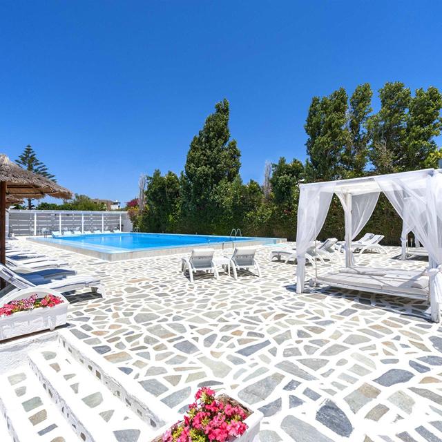 Het stijlvolle Hotel Narges ligt op ongeveer 50 meter lopen van het dichtstbijzijnde strand. Rondom Aliki zijn nog veel meer strandjes te vinden die de moeite van het verkennen waard zijn. In het haventje van het vissersdorpje kun je aanschuiven bij één van de (vis)tavernes. Maar je kunt natuurlijk ook genieten van de heerlijke gerechten die in het mooie wit/blauwe restaurant van het hotel worden geserveerd. De kamers zijn licht ingericht met smaakvolle kleuraccenten. Rondom het zwembad staan romantische zitjes waar je ’s avonds, als het hotel stijlvol verlicht is, van een lekker drankje kunt genieten.