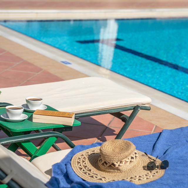 De kamers zijn comfortabel ingericht in natuurlijke tinten, met houten meubels en een eigen balkon of terras. Geniet ’s ochtends van een ontbijtbuffet op het terras, met onder andere huisgemaakte marmelade. Overdag kun je ontspannen bij het zwembad of een drankje halen aan de bar.
