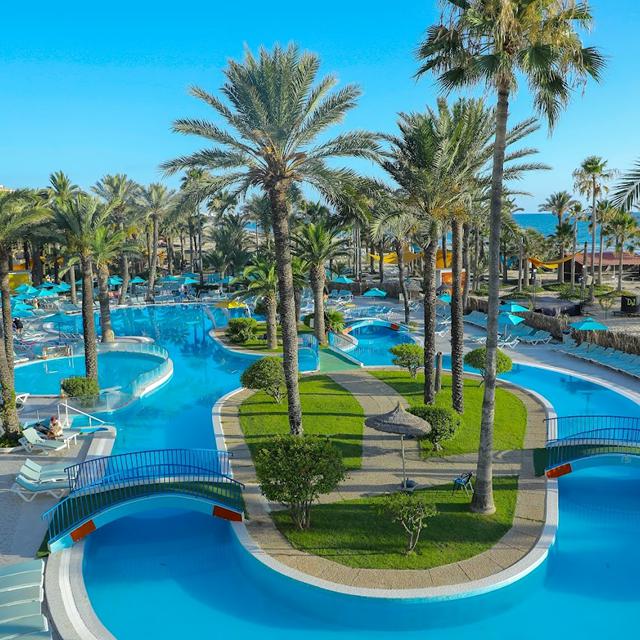 Combineer de charme van het stadje Sousse met het comfort van een prima verzorgd all inclusive hotel. Hotel Riadh Palms bevindt zich zo’n beetje midden in het centrum en grenst aan het mooie lange zandstrand. De tropische tuin van het complex is ruim opgezet en biedt dan ook voldoende plaats om lekker van de zon te genieten.