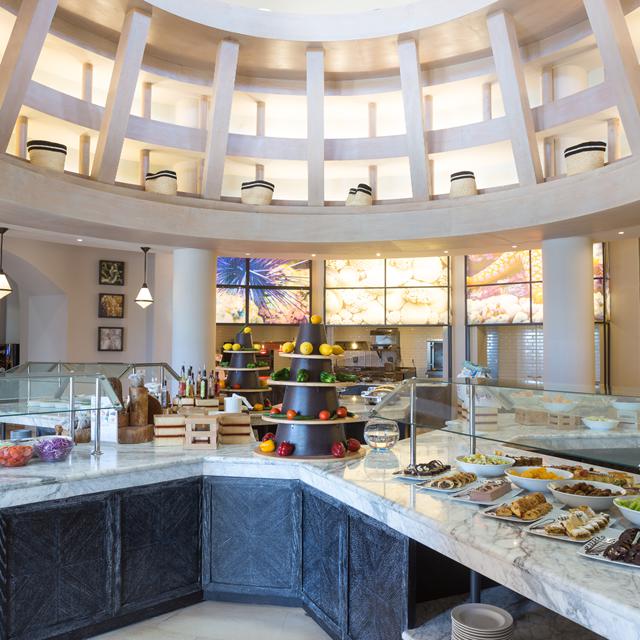 De ruime kamers liggen verspreid over het resort en bieden uitzicht op de lagunes, privéstrandjes of het zwembad. Ook bevinden de drie restaurants zich allemaal op een andere locatie. Maak een culinaire wereldreis door steeds een ander restaurant uit te proberen: in hoofdrestaurant Miramar geniet je van allerlei internationale gerechten, terwijl je de authentieke Midden-Oosterse keuken kunt proeven in het Oriental 1001 restaurant. En voor een romantisch diner met kaarslicht ben je in het Italiaanse restaurant La Piscina aan het juiste adres.