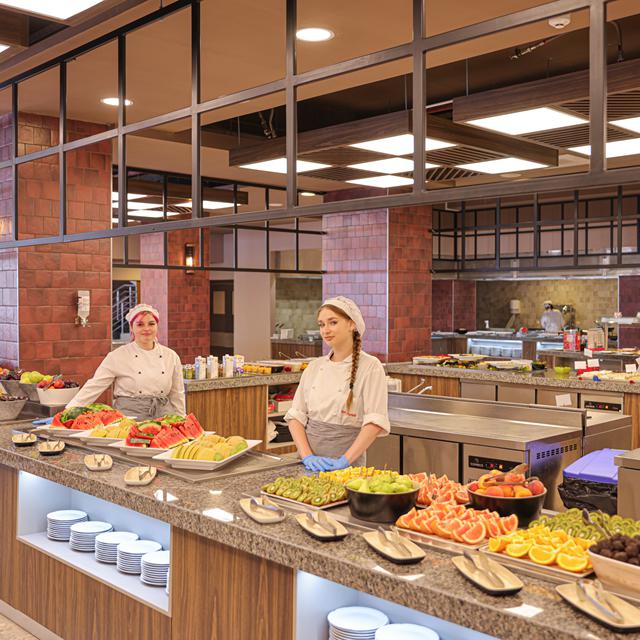 kamers van dit familiehotel hebben een vrolijke inrichting en beschikken over een fijn balkon. Er is een uitgebreid all inclusive programma: voor verkoelende drankjes kun je terecht bij de poolbar. Lekkere trek kan gestild worden bij verschillende bars en in het restaurant staan heerlijke internationale gerechten klaar. Dat wordt een heerlijke vakantie!