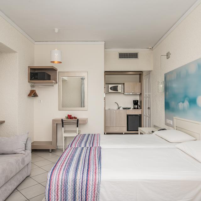 Hotel Kos Aktis is een modern en luxe designhotel met een vleugje romantiek als slagroom op de taart. De perfecte ligging, namelijk aan de rand