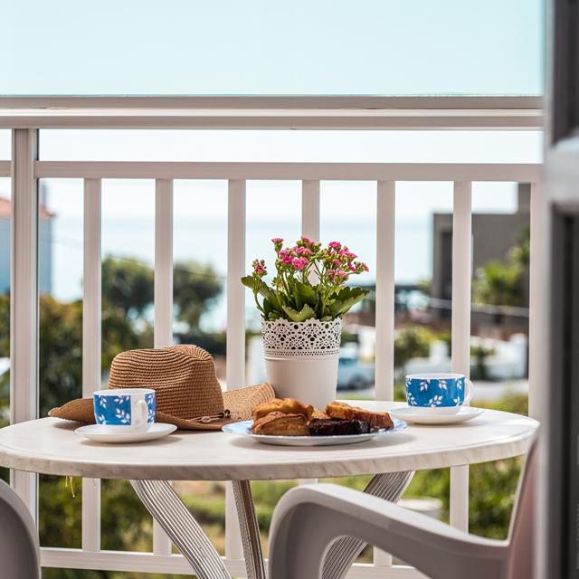 Het vrolijk ogende Hotel Blue Bay Resort is tegen de klif van Agia Pelagia aangebouwd. Hierdoor geniet je van een prachtig uitzicht vanaf diverse plekken