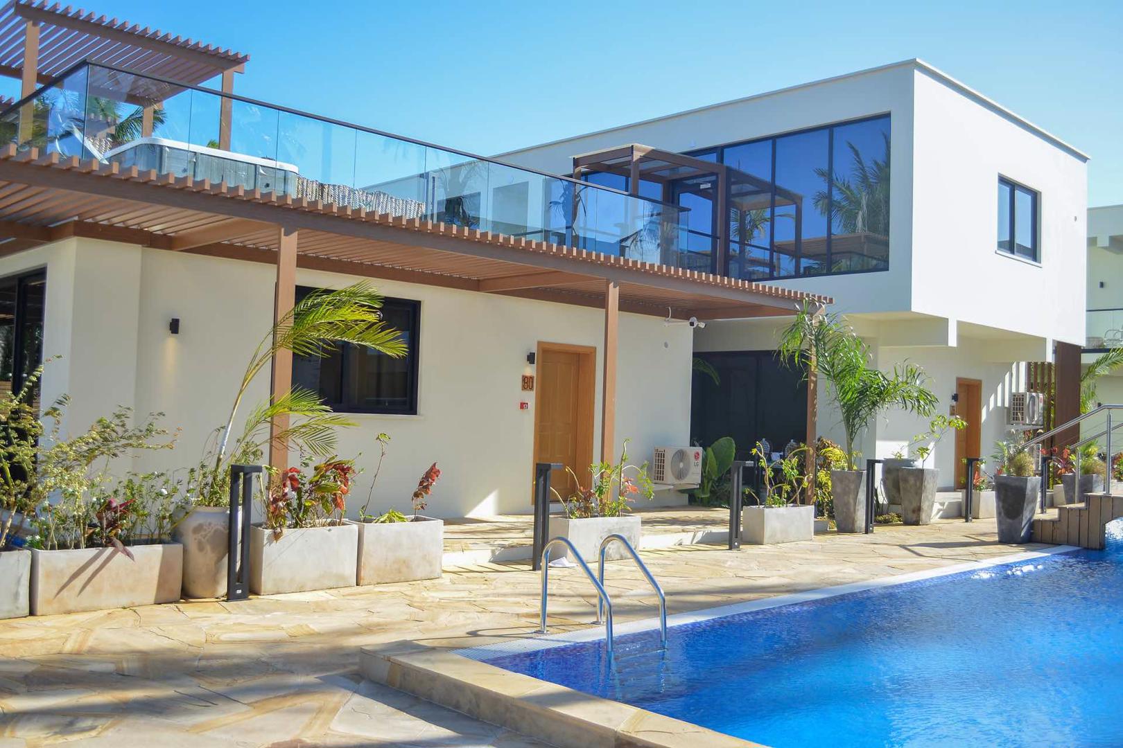 Droom je van een tropisch paradijs? White Paradise Zanzibar, een 4-sterrenresort in Pongwe, biedt een serene ontsnapping met een privéstrand en een groot buitenzwembad dat